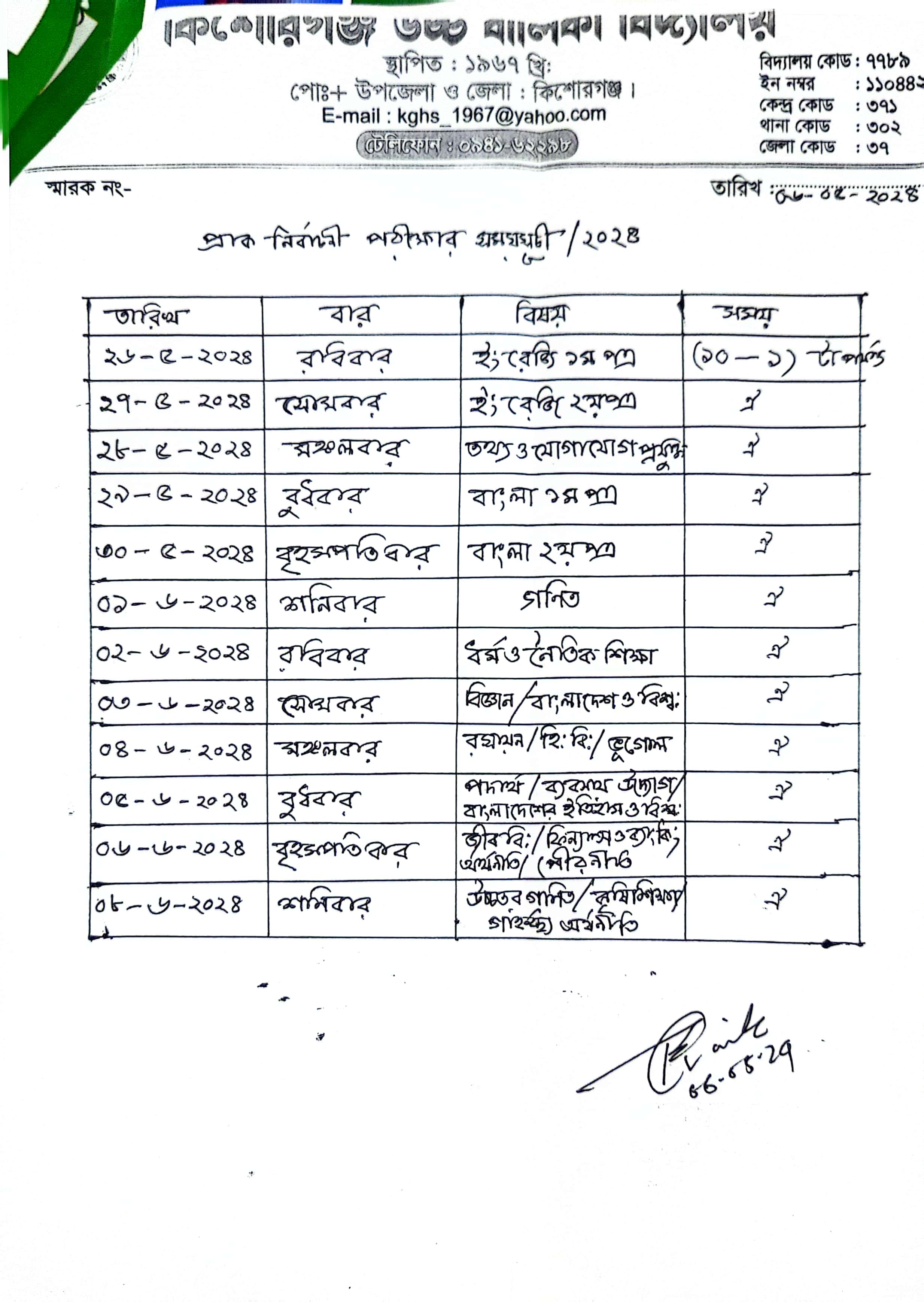 প্রাক-নির্বাচনী পরীক্ষার সময়সূচী-২০২৪ প্রকাশ